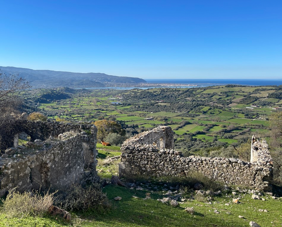 The village, now abandoned, stands amidst natural splendor that peaks in spring, with blooming almond trees and other native plants highlighting the distinct atmosphere of the ruined buildings. The major earthquake of 1966 and the subsequent storms caused significant damage, forcing residents to temporarily leave. Although there was an attempt to return around 1970, the government ban on tobacco cultivation ultimately led to the permanent abandonment of the village and the relocation of its residents to present-day Plagia at “Kastrí.”